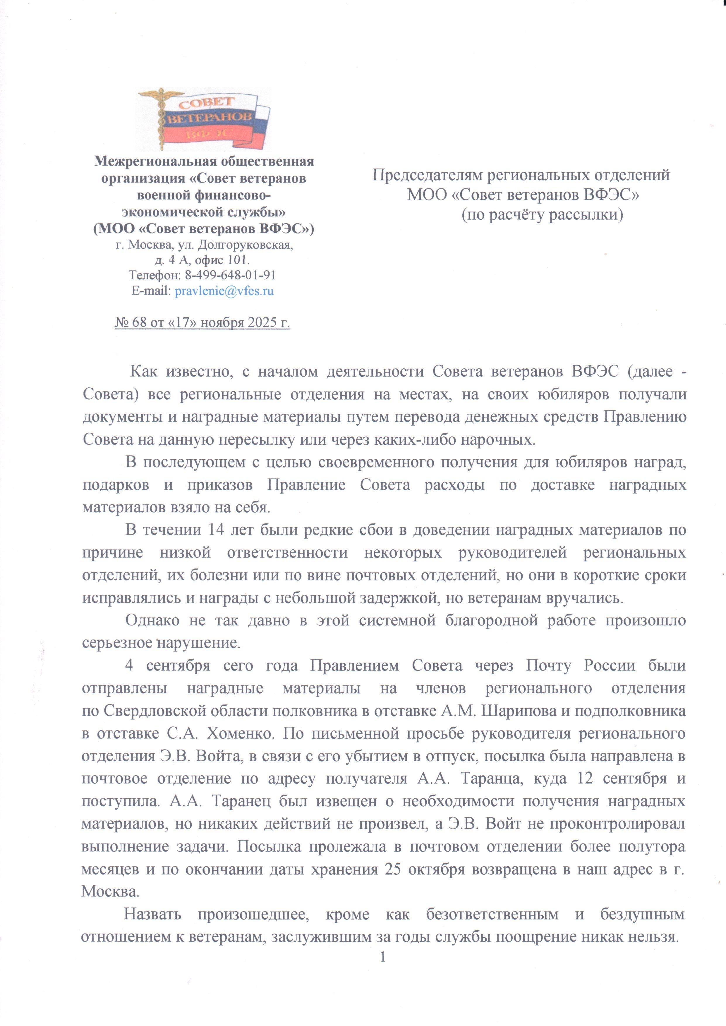 1 ноября 2025 г. В ноябре отмечают свой День рождения члены Совета ветеранов военной финансово-экономической службы: