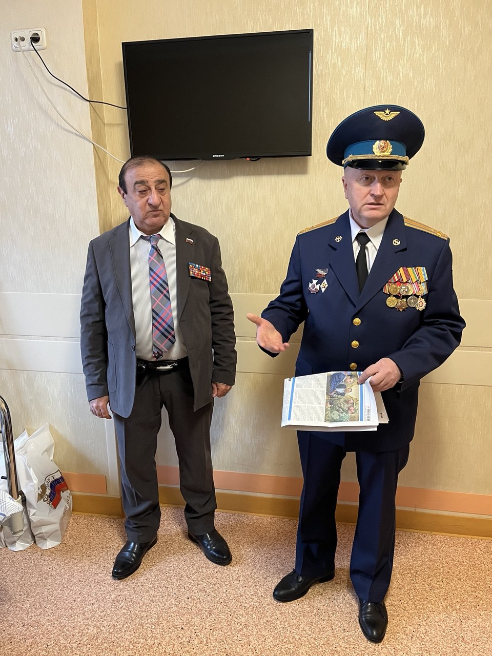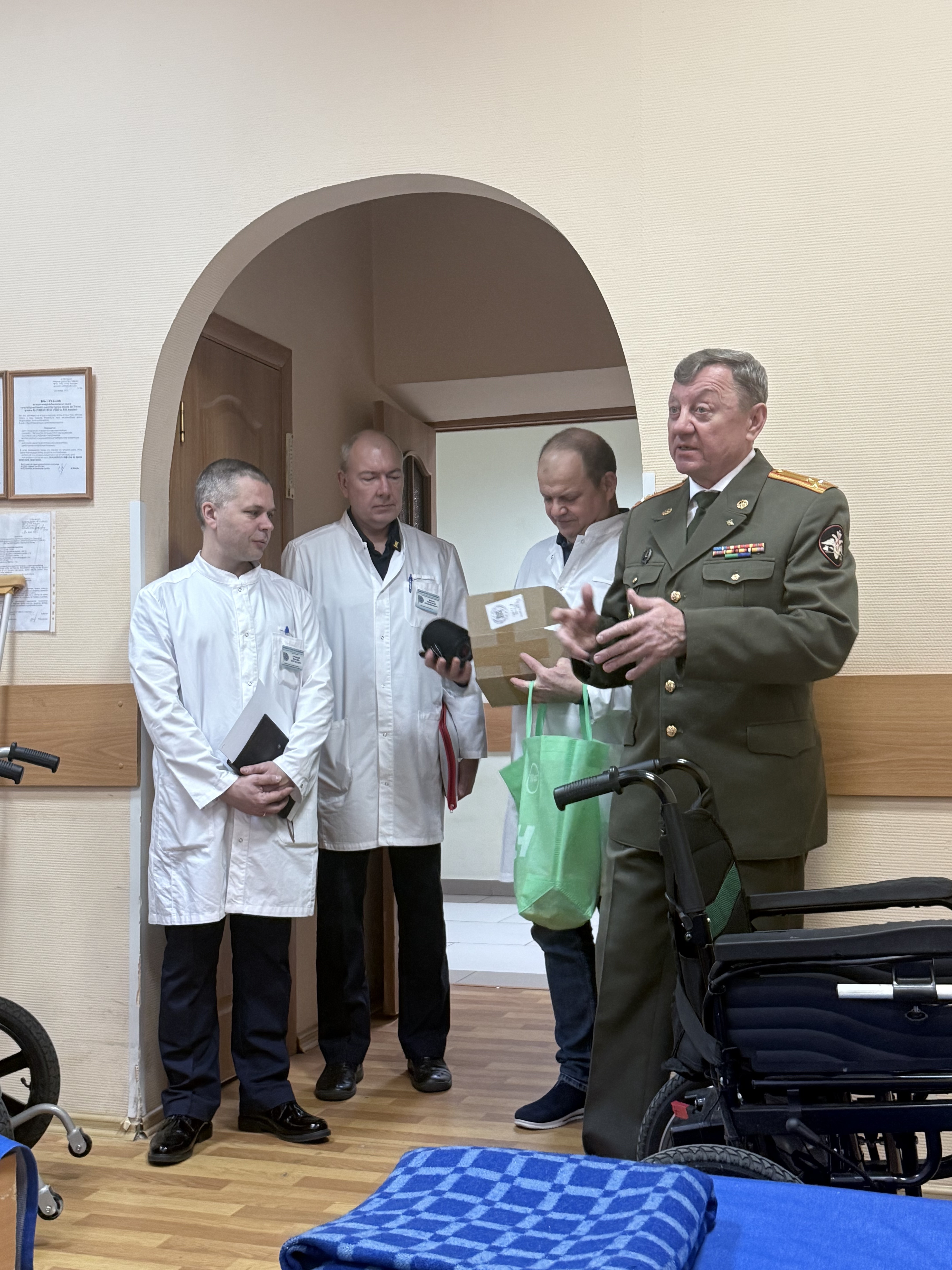 В филиалах главных и центральных госпиталей подарки вручались под руководством их начальников. В ходе проведенных встреч вышеуказанные должностные лица тепло и сердечно поздравили раненых и больных с наступающим Новым годом, высказали им слова огромной благодарности за их мужественный ратный труд, и пожелали скорейшего выздоровления, а всем нам – скорой победы. Гостей из Совета ветеранов ВФЭС тепло и сердечно встречали не только сами раненные, но и их лечащие врачи, другой персонал госпиталей. В своих выступлениях они, в частности, отмечали, что лечение душевных ран сейчас не менее важно, чем лечение ран телесных. Правление Совета ВФЭС благодарит всех ветеранов, принимающих участие в этой благородной акции, особые слова благодарности мы приносим Андрею Алякину за его активную неутомимую талантливую поэтическую деятельность. Думается, что такая необходимая, проделанная в преддверии Нового года, работа патриотической благородной направленности будет реально поддерживать и укреплять боевой дух наших военнослужащих и приближать общую Победу.